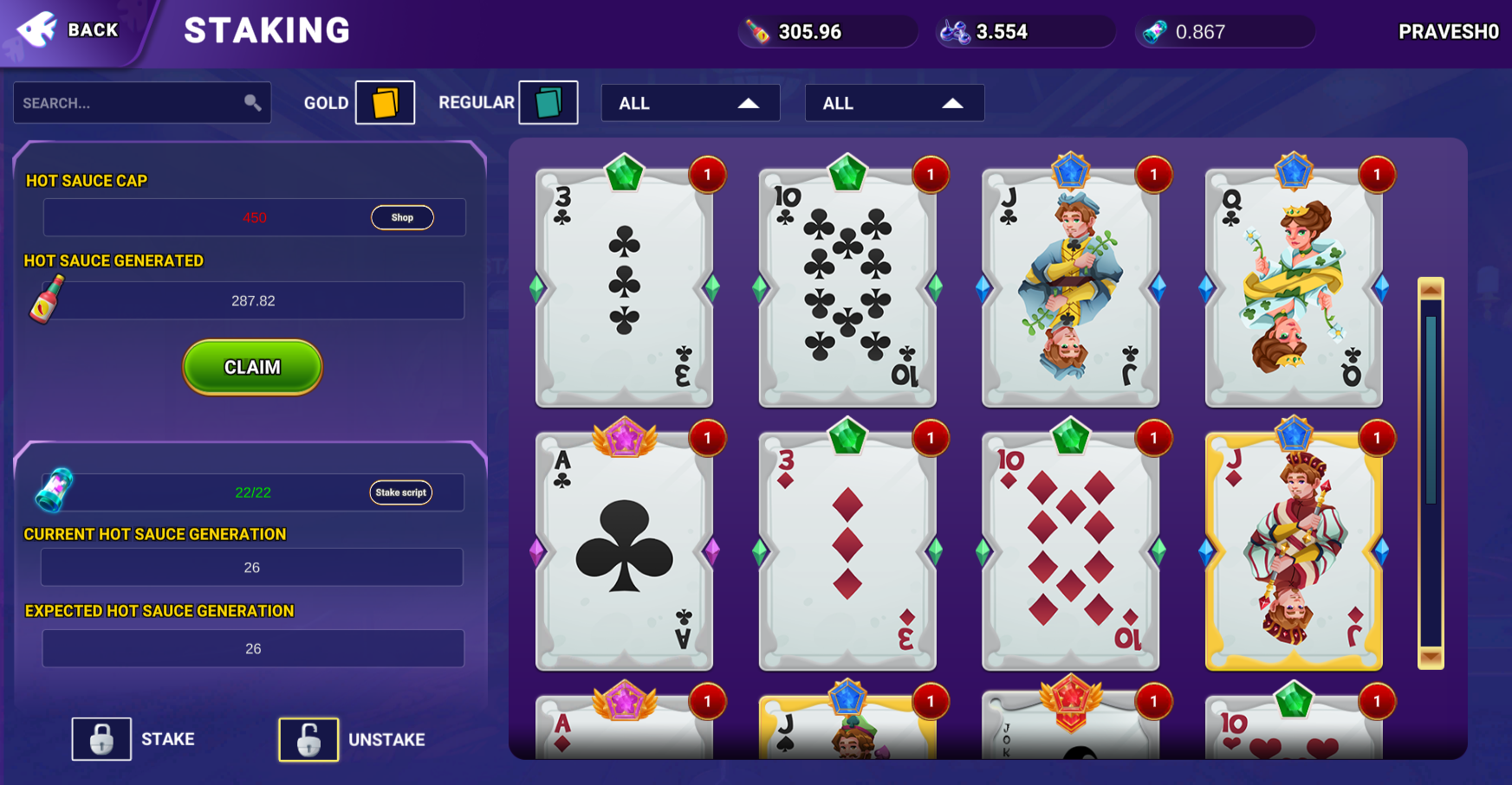 As you already know, there are multiple games I can spend my Hotsauce on, but my favourite one is Blackjack. So, the first 300 HotSauce would be spent gambling on Blackjack.