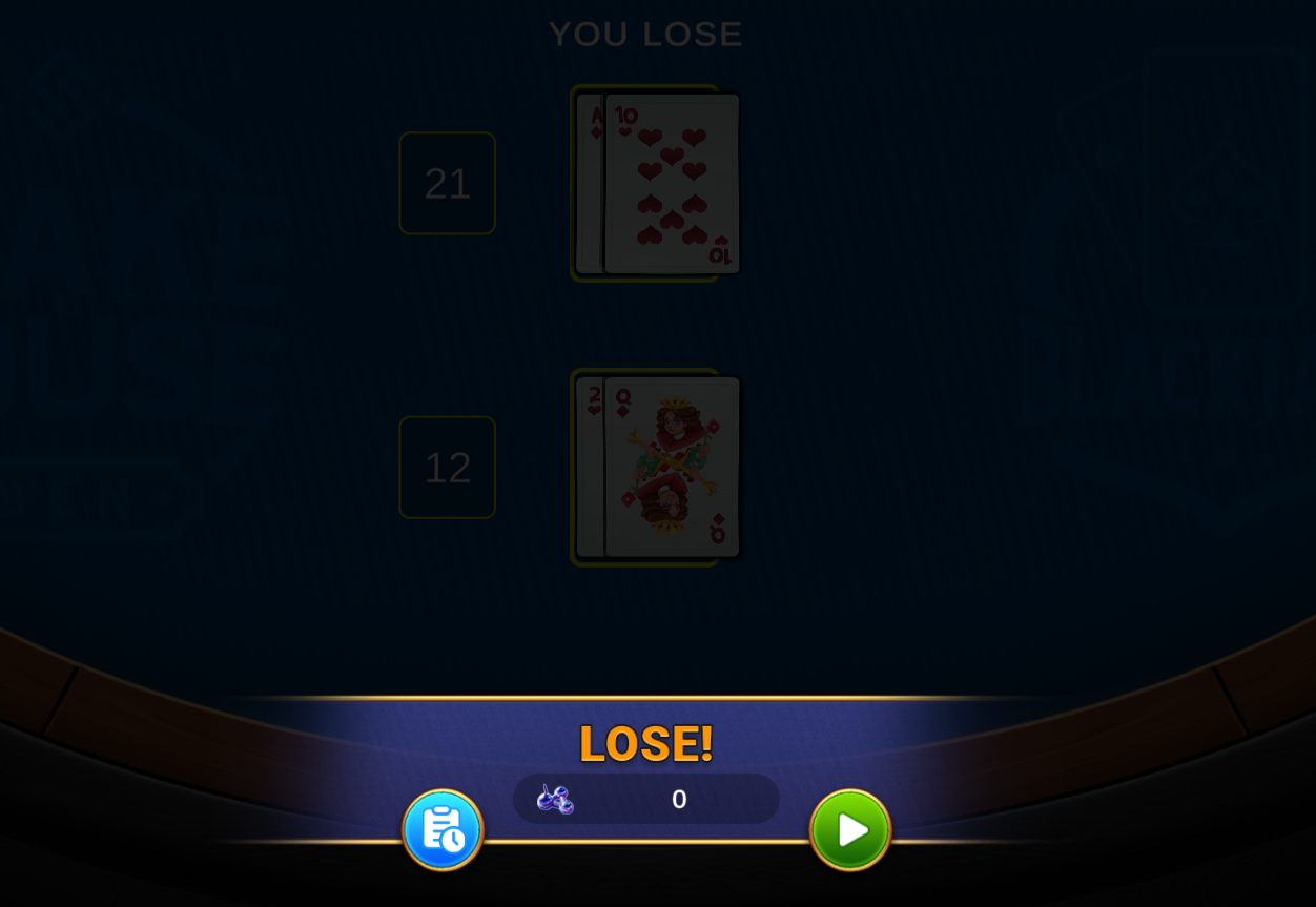 In the next round, I got very unlucky as the dealer got a Blackjack.