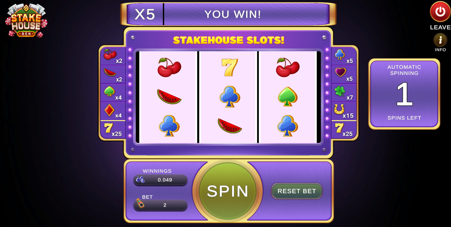 It was a fine day at StakeHouse Den for me overall. Had a decent time with Blackjack and even won a couple of rounds at the slots lol. Now, I will let my refrigerator get filled up with tasty Hotsauce so I can play again and win more.