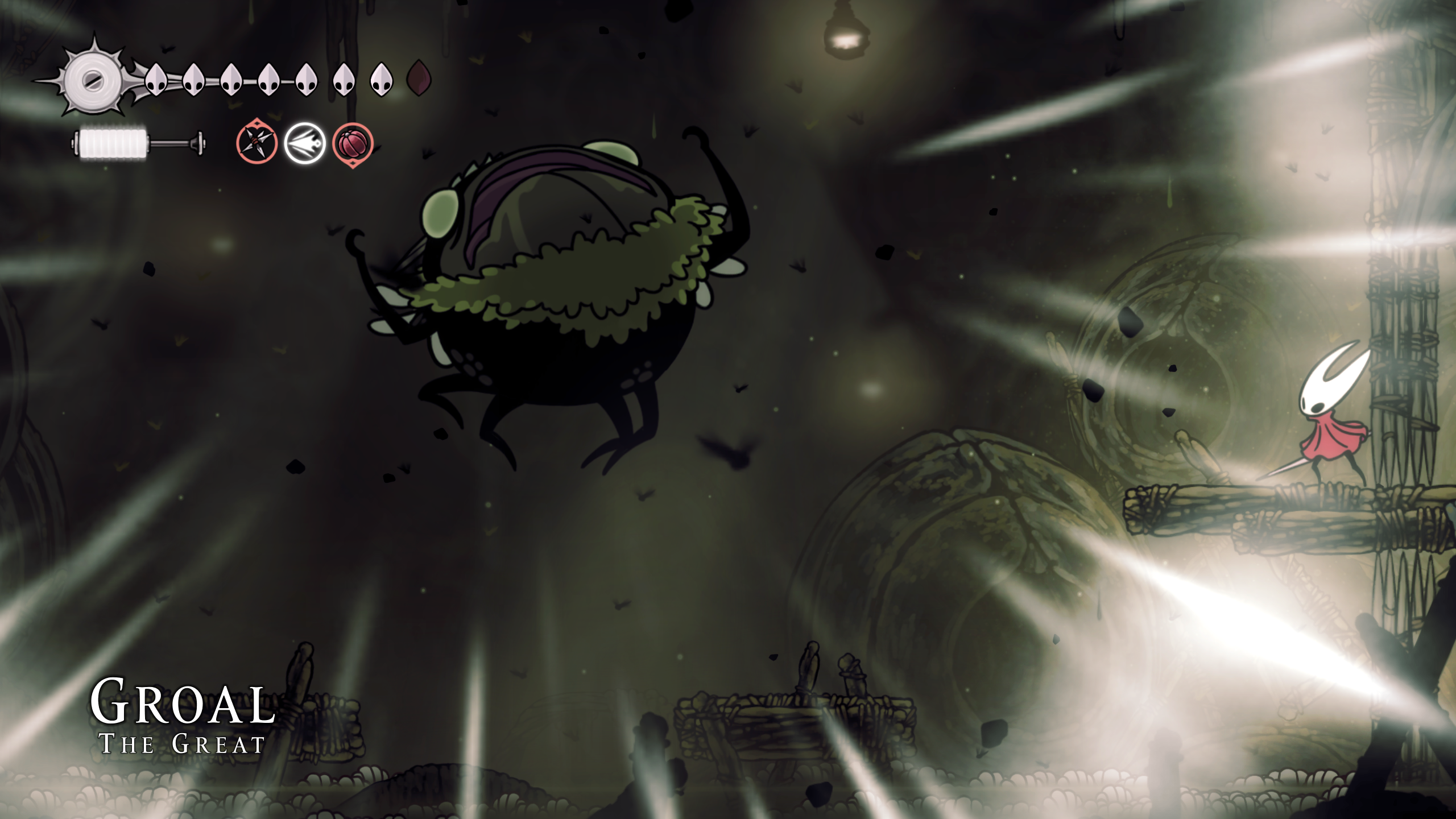 I found a closer bench, which was very well hidden. That was such a relief, and it cut the runback time to just a couple of minutes. It took me about 7-8 attempts to kill this boss. It has an attack where it swallows you, dealing two mask shards of damage one by one. But while you are inside its mouth, you can strike it as well. I was so lucky when it swallowed me. I had two mask shards, and my last hit killed it, or I would be dead.
