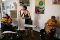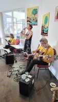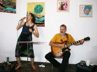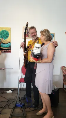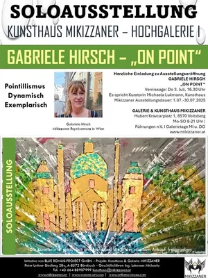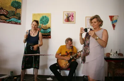 „Pointillismus“ heißt die Kunstrichtung von Gabriele Hirsch, die sie in Michaela Lukmanns Kunsthaus Mikizzaner ausstellt. Wir haben dann die Feier danach mit Musik unterstützt.