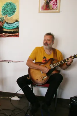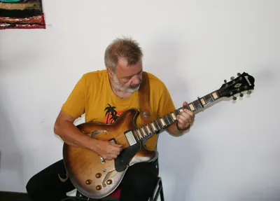 Richard Dopler, sonst im Trio Flamenco-Gitarrist, hier an der E-Gitarre.