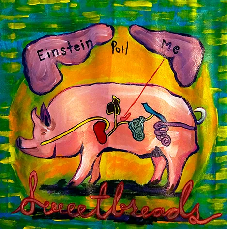 All of Our Sweetbreads Taste the Same 2018. Acrylic on soiled dinner napkin, 12 x 12"