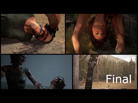 We are approaching the place with Ellie and eliminating infected that are along the way, when we are close to the place we step on a trap which leaves Ellie hanging upside down and injured by a tree branch that pierced her when she fell into the trap, she faints, and then the same men who caught Abbye arrive, Ellie mocks one of them because she is scared by a clicker who is hanging like her; the annoyed man brings her closer to bite her, and she throws herself at the monster along with the man, who uses it as a human shield while the other shoots, and she wounds him and gets information about Abby and then eliminates him...