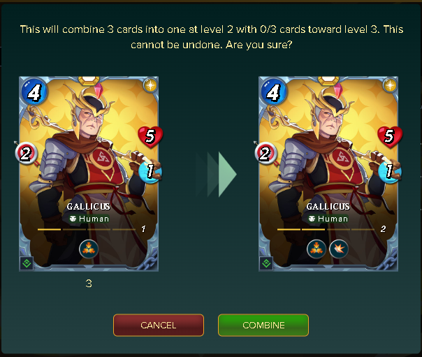 And now Gallicus also has the Shield Ability, which deals 50% less damage (rounded up) from physical attacks or 0 damage from physical attacks of 1 power. Gallicus only costs 4 mana, so it's one of my most used cards, especially in low-mana battles. And I will be using it more in battles since it will take less damage from physical attacks.