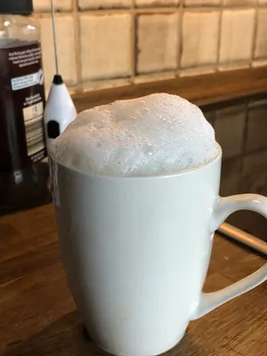 Jetzt gießt du die heiße Milch in die Tasse, sodass sich Zucker und Kaffee zusammen auflösen. Rühre alles gut um – ich benutze dafür gerne einen Milchaufschäumer. Und das war’s. Der Geschmack erinnert mich stark an heiße Schokolade. Guten Genuss!