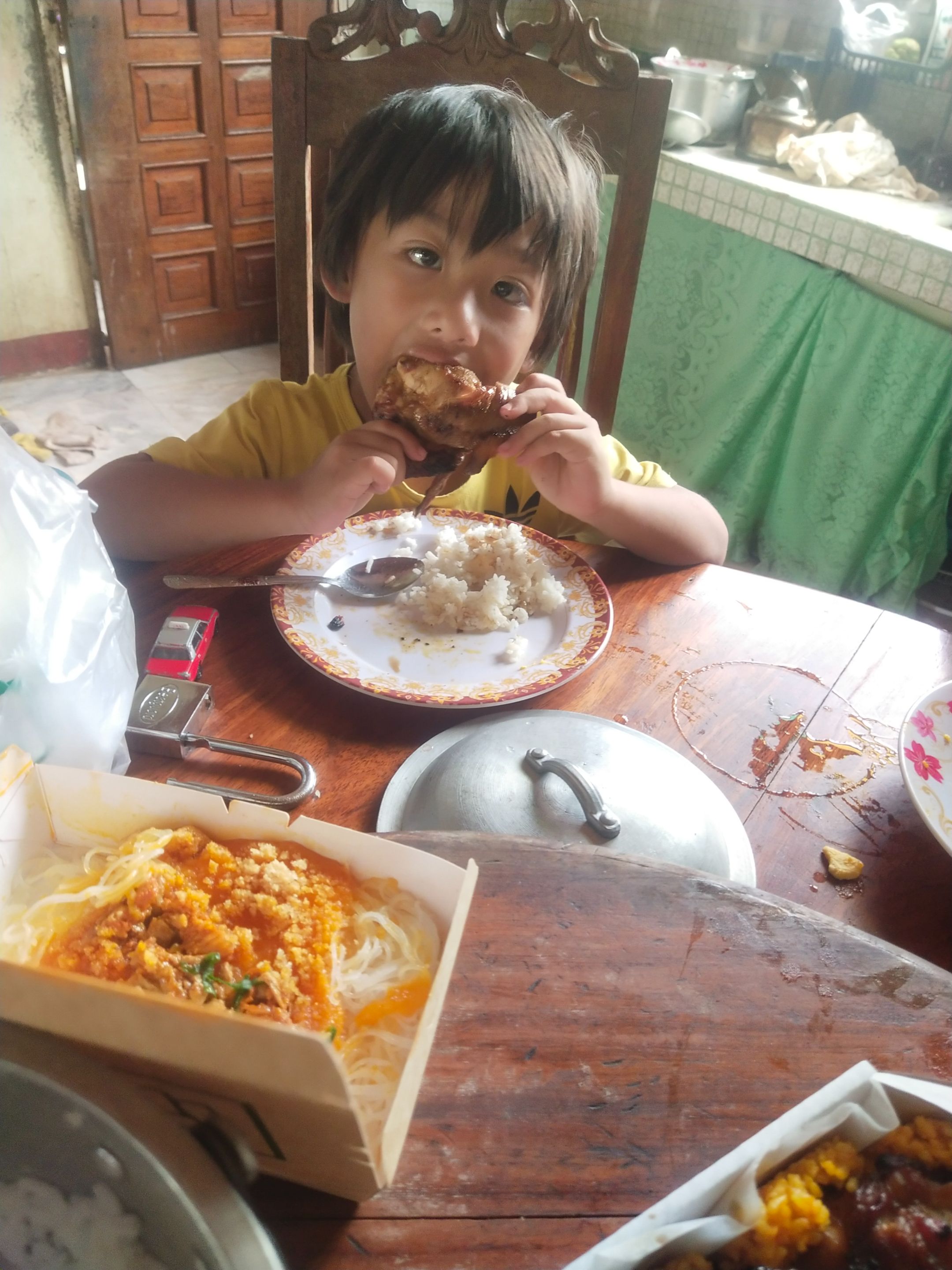 When I got back, we all ate together, even our baby joined in! We had a happy, hearty, and satisfying lunch. The kids are so happy with our lunch and they eat a lot of the java rice. After eating, we rested for a while as we waited for my other siblings to come so that we could all go home to our parents’ house at the same time.