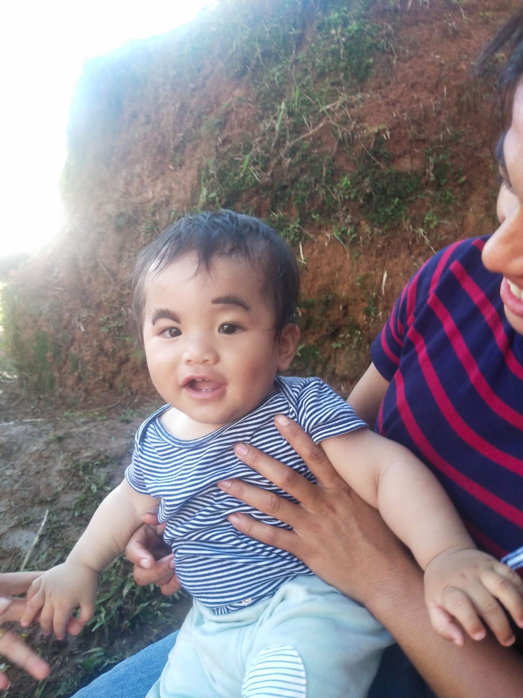 Meet my 9 month old baby boy, Naythan, the only baby at home. After the wedding, we were all resting for a while when my newly married sister sat beside us and started playing with my little one. She suddenly noticed how mature my baby’s face looked and everyone started laughing.
