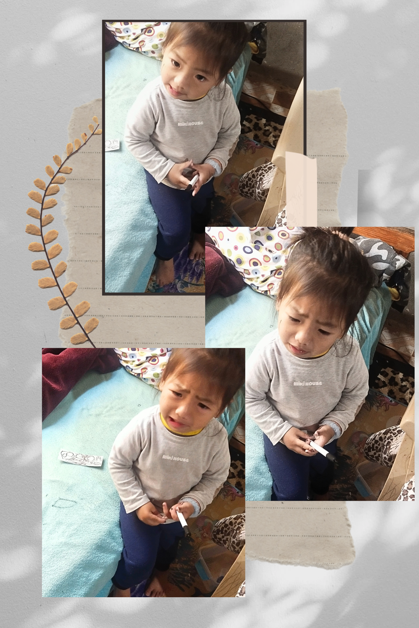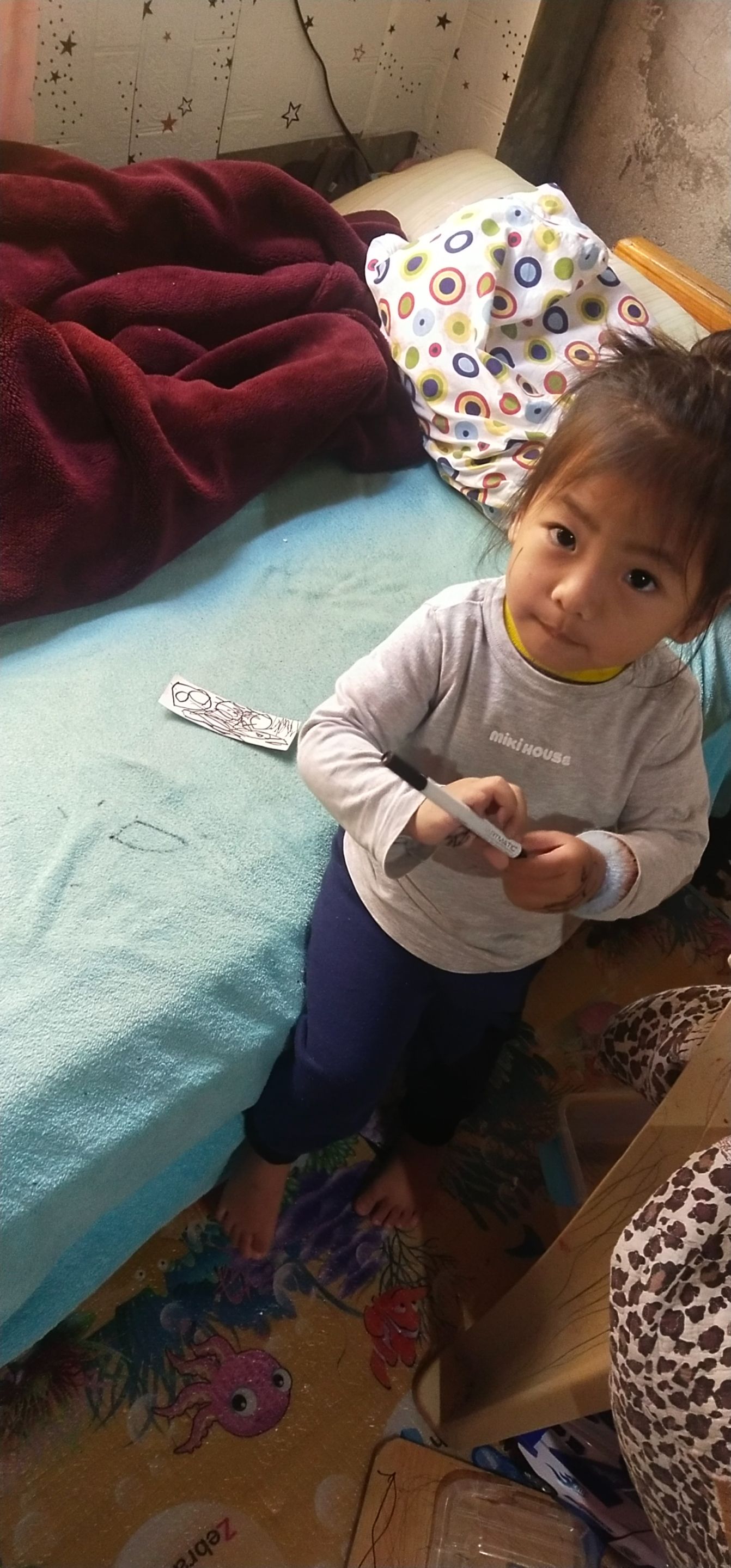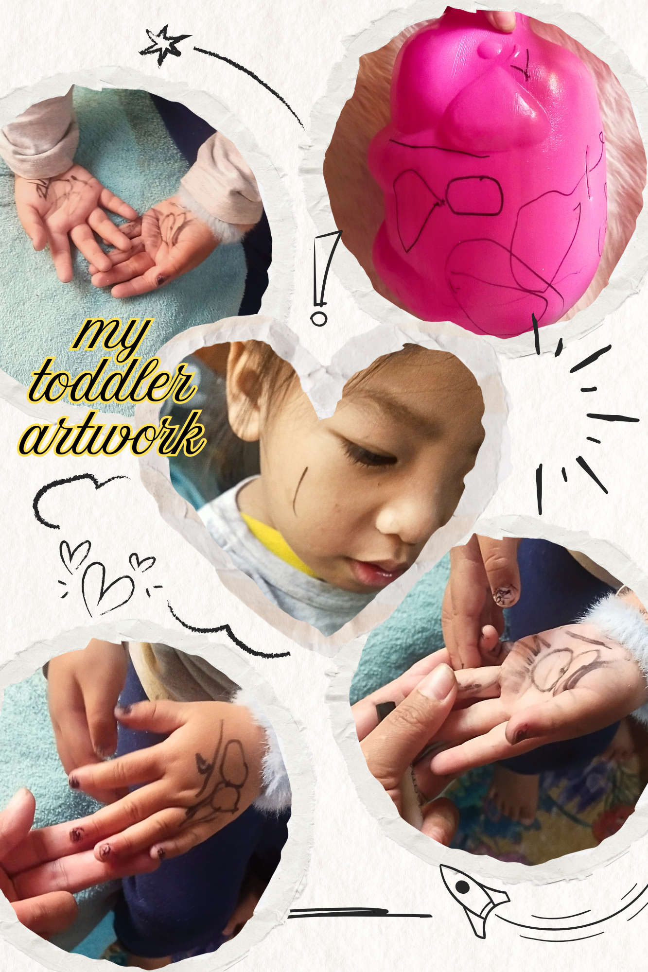 At first, I got mad as any mom would do. But when I saw her teary eyes and how proudly she showed me her “nail art,” my heart softened. Instead of scolding her, I gently asked what she did. She happily showed me her tiny, ink-covered fingers. Not only her hands, she even scribbled on her face, the bed sheet, and a piece of paper!