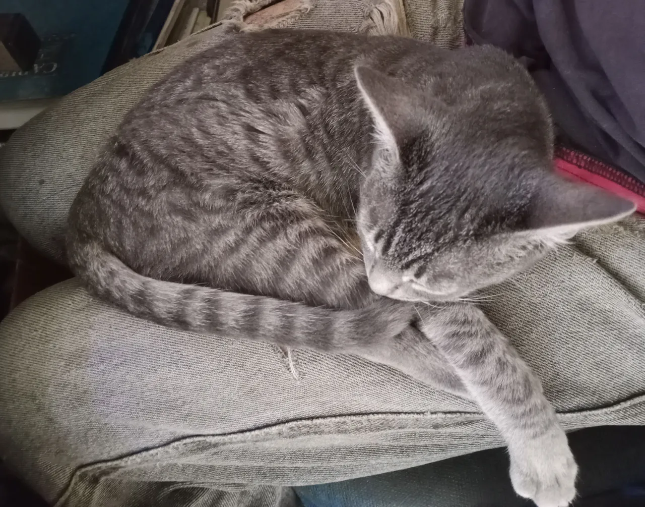 I found a new family for Gris the kitten so she can live peacefully. She's the cat I rescued a few weeks ago; she was abandoned by neighbors who left the country.
