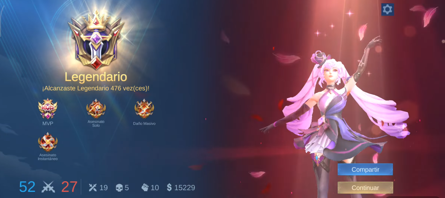 > Generalmente juego con **Aamon, el señor de los fragmentos**, pero alguien del equipo contrario decidió bloquearlo. Así que elegí jugar con otro personaje llamado **Layla**. Una chica que tiene una gran arma con mucha potencia y me permite destruir todo a su paso causando mucho daño. Mientras más lejos te alcance, más daño te hace.