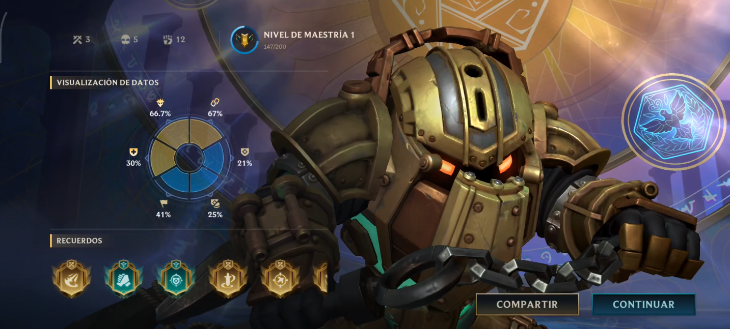 > No puedo negar que me divertí usándolo pero lo que no me gustó mucho es que como campeón es un poco lento para mi gusto, tanto para movilizarse como para golpear. Lo más probable es que lo vuelva a usar, pero no le daré tanta prioridad como a mis otros personajes favoritos. Igual quiero seguir probando a otros.