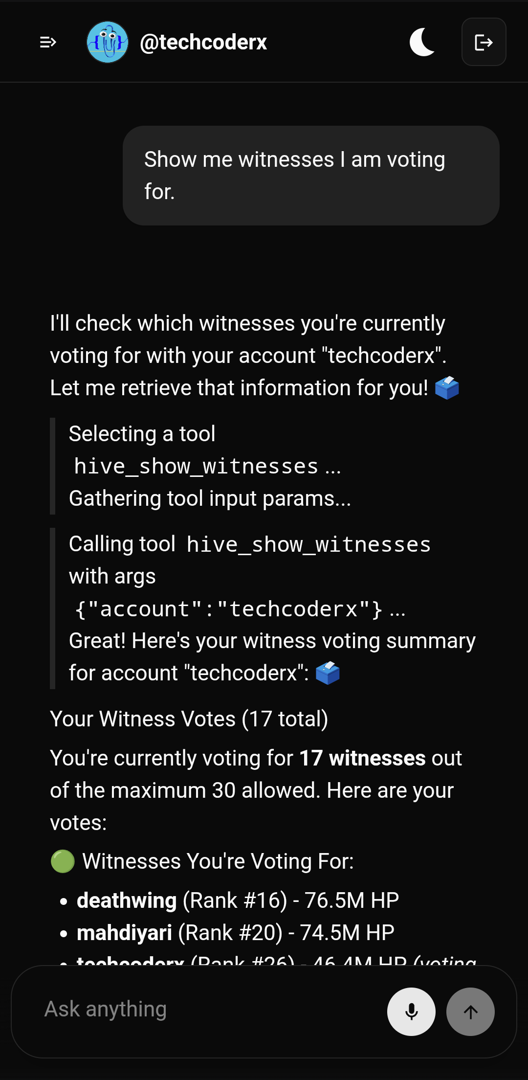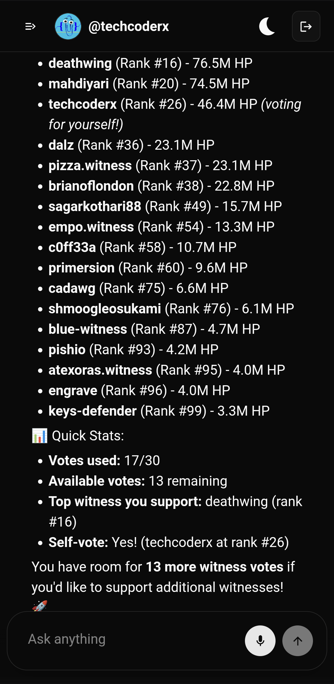Clive AI may not respond some information accurately as it may be using pre-trained data such as staked HIVE tiers (not included in screenshots above). I'm also not sure why it says engrave ranks 96 with the wrong HP votes but he was (and still currently is) definitely within top 25 at the time.