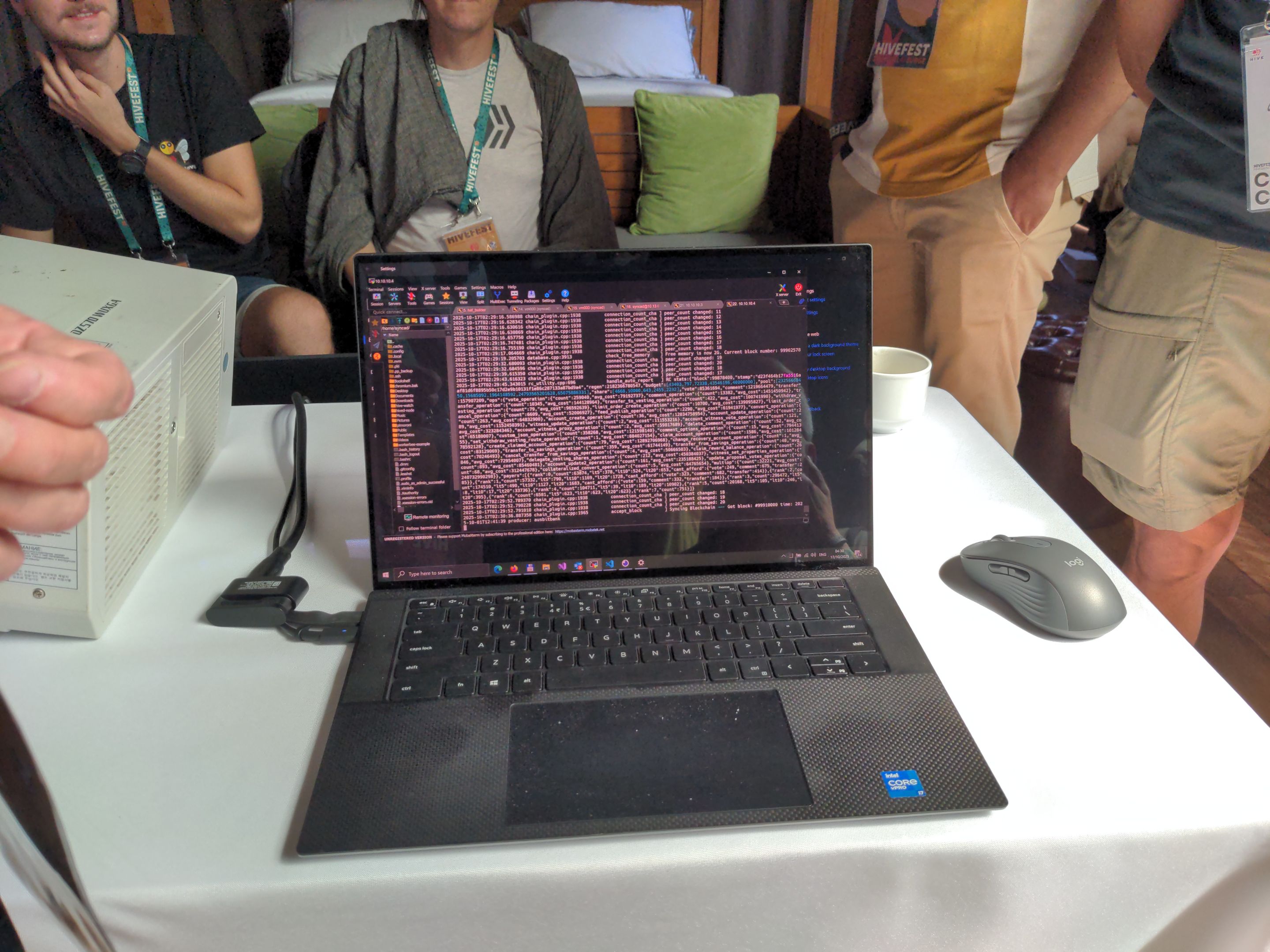 These are Raspberry Pi 4 8GB running in pruned mode, they only store the chain state and maybe some recent blocks. Both nodes are running on WiFi network at the venue. This was made possible thanks to v1.28.0 release (it was a v1.27.12 RC at that time), specifically the comments archive where comment indexes were moved from shared_memory.bin to a RocksDB database to reduce memory usage.