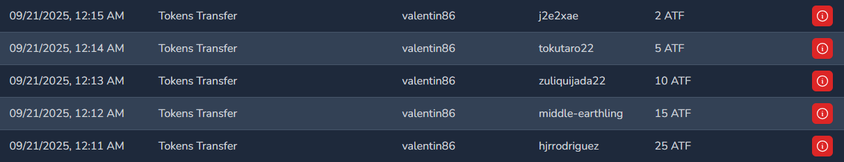 6 | @arveno | 123.00 | 2 #ATF Tokens | - |