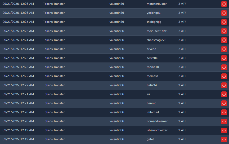 21 | @ishareontwitter | 100.63 | 2 #ATF Tokens | - |