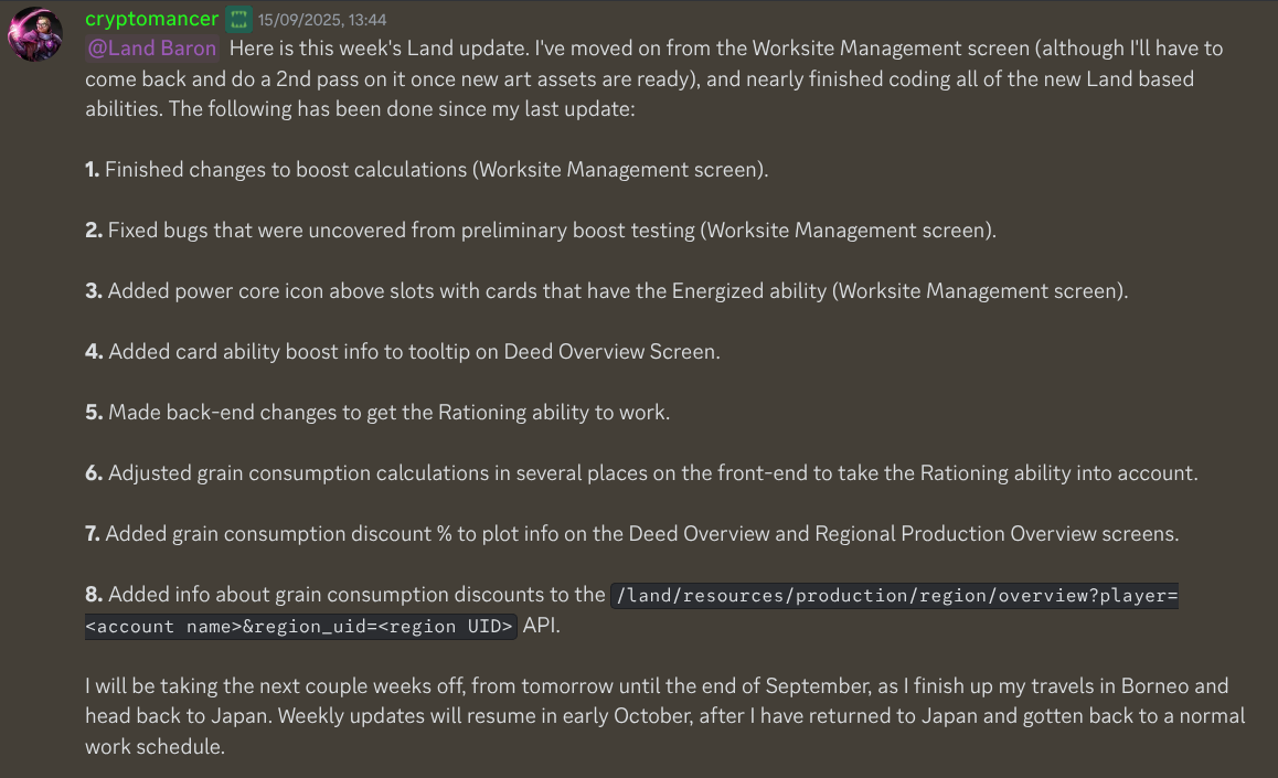 @cryptomancer has been taking care of Land for a long time and he has done a very good job. There are new Cards in work that has specialized Land Abilities. There is very little known about them and there is no point in having too much speculation. We will get to know about them and we will have enough time to process them and make decisions regarding them. There are some interesting screenshots shared on Land Barons channel (accessible for those withe 50 or more Plots). These are in no way a finalized product.