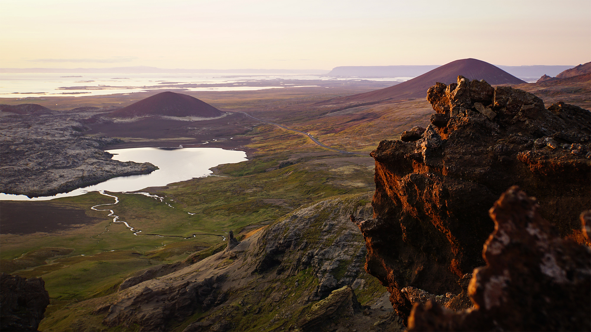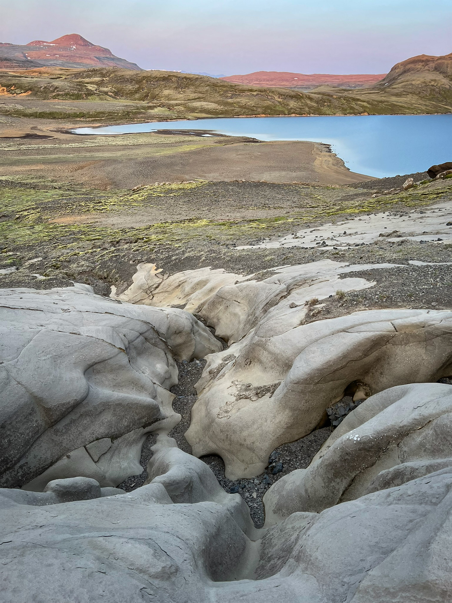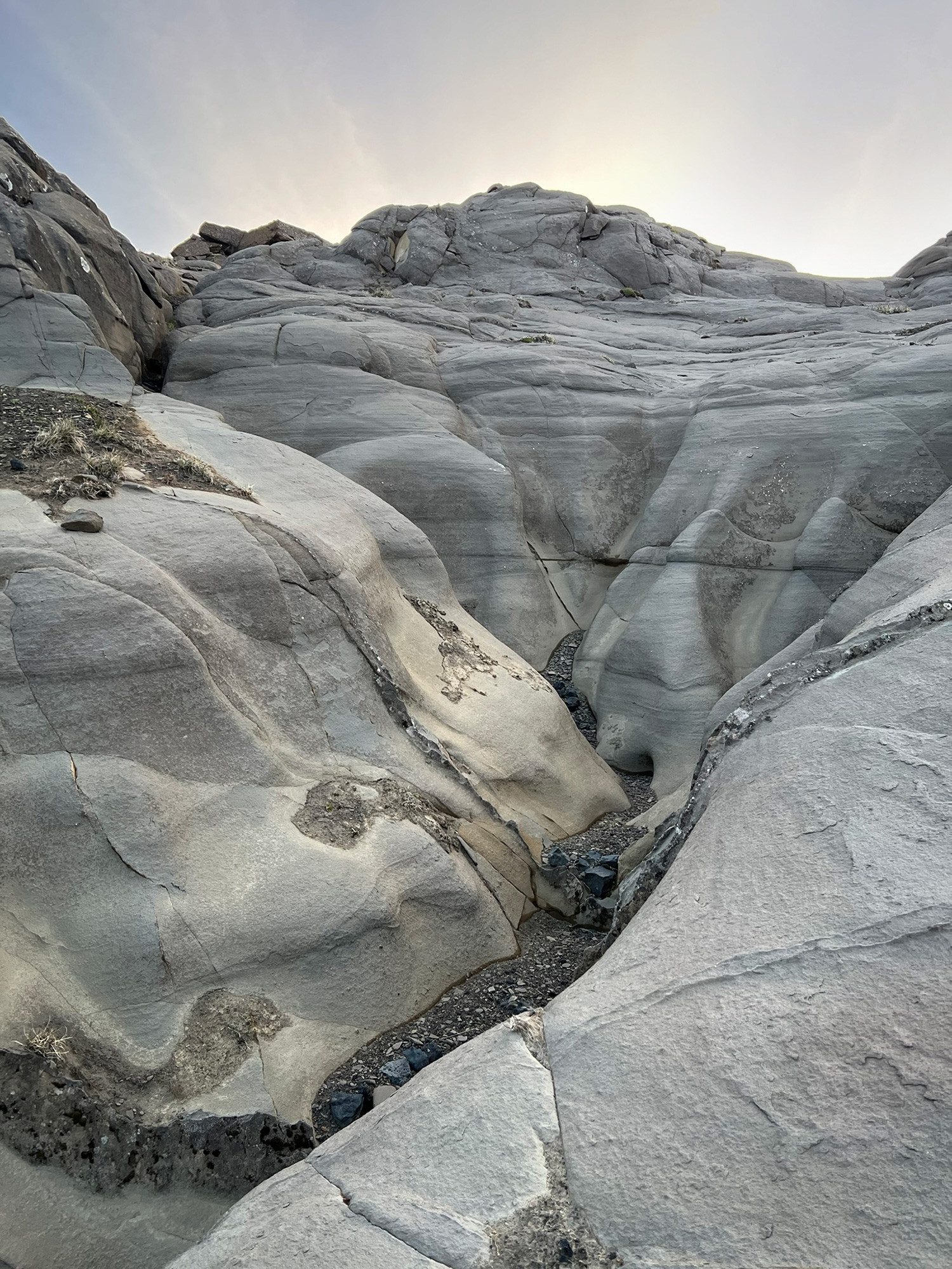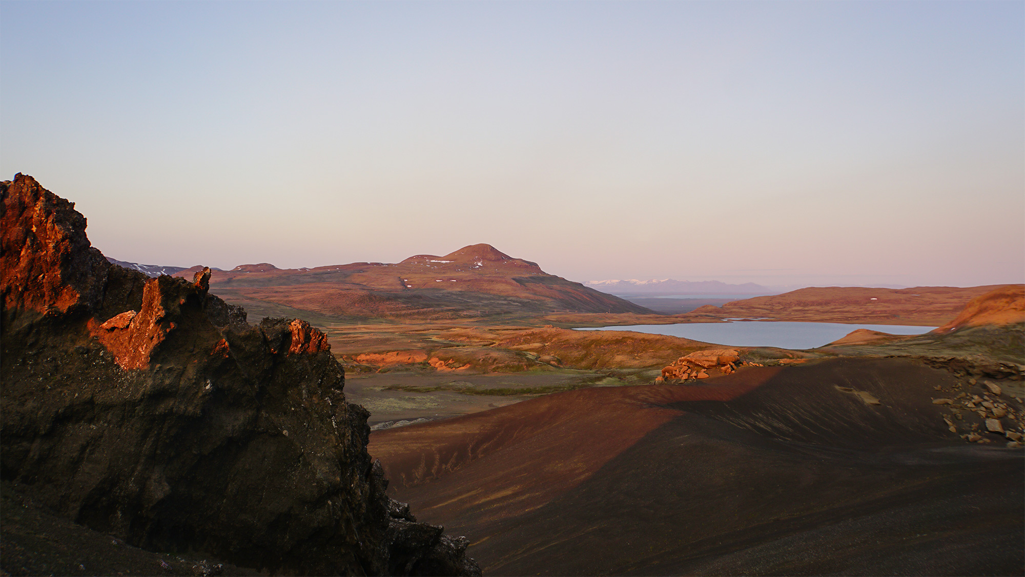 Wspinaczkę zakończyłam pod czubkiem skalnego zwieńczenia Horna, na granicy komfortu. Następnie przeszłam trawersem kawałek na północ, by bez przeszkód nacieszyć oczy widokiem na pole Berserkjahraun.