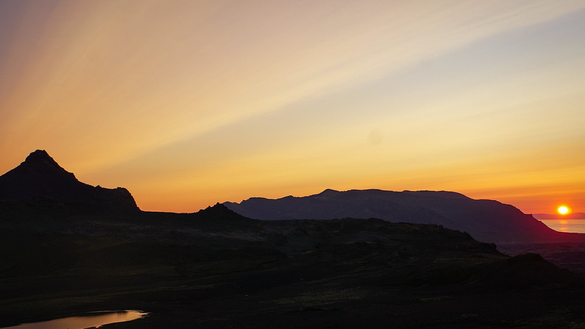 Jeziorko, w które dzisiaj wgryza się lawa, powstało na skutek erupcji. Zasilają go liczne, wężowate strumienie spływające z okolicznych wzgórz.