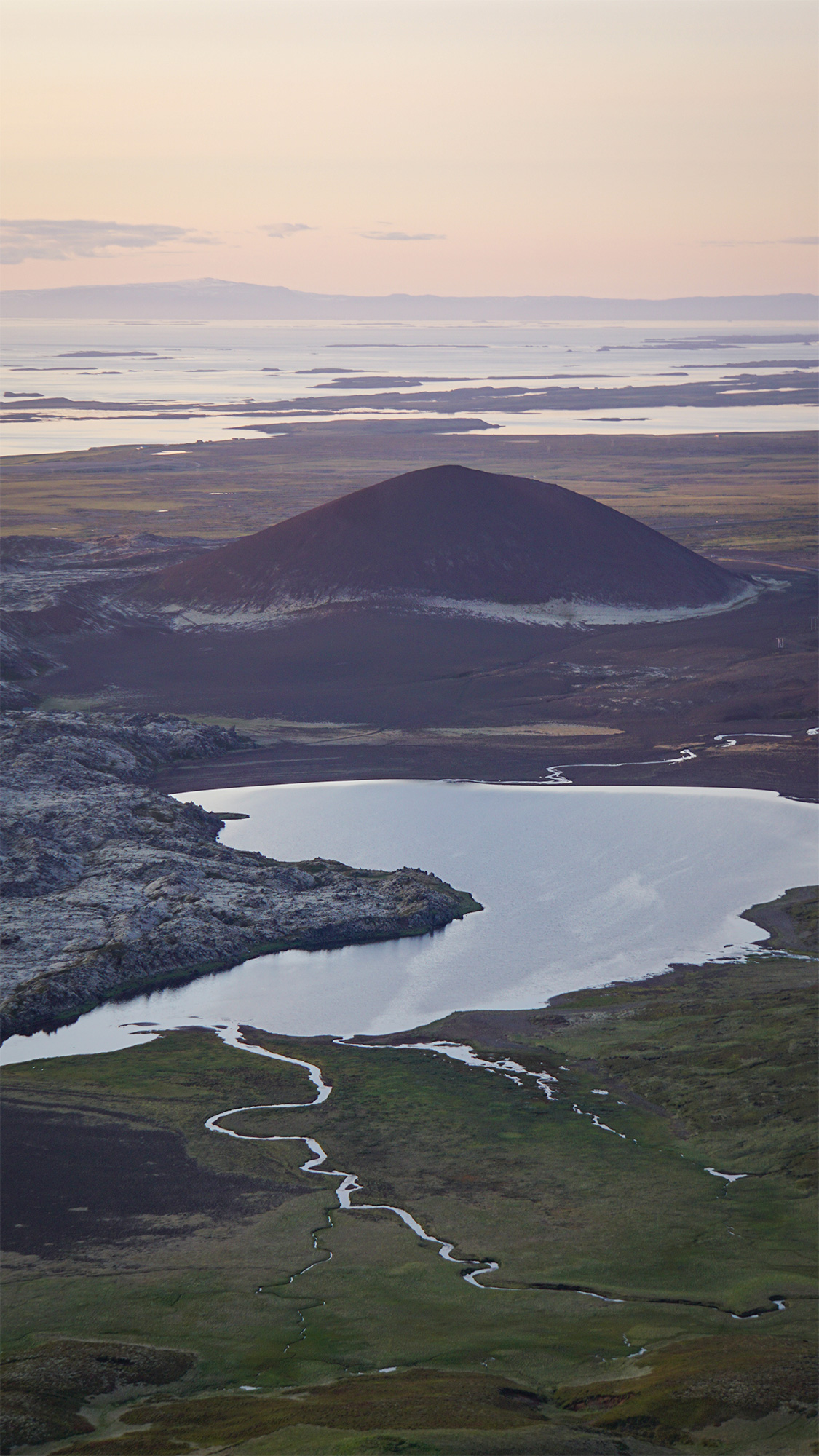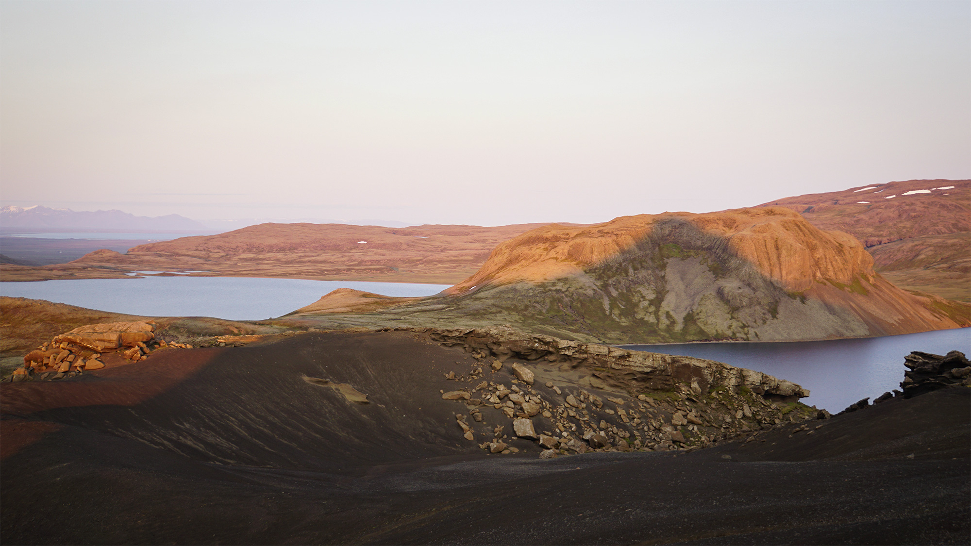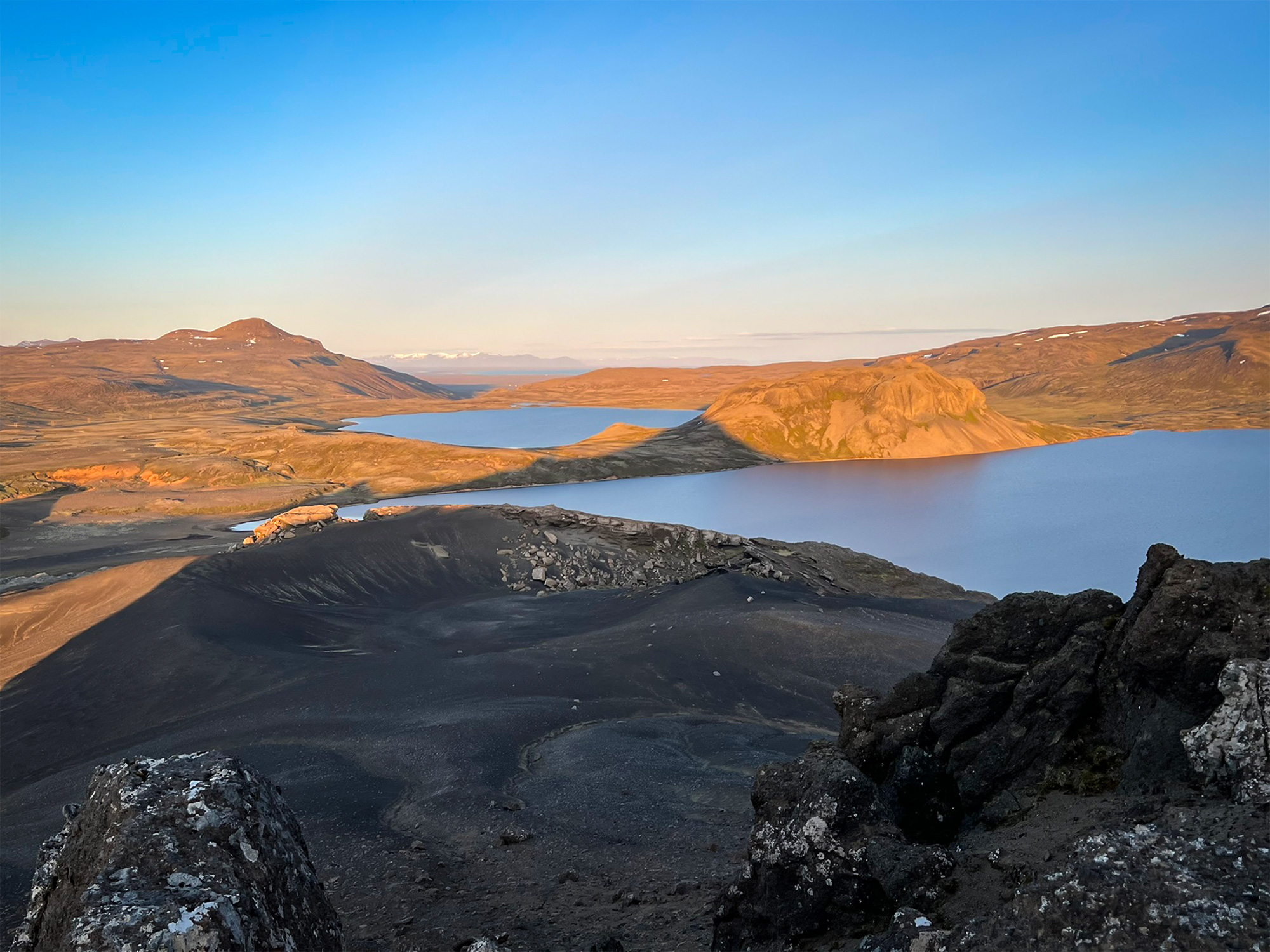 Byłam już na tyle wysoko, by móc zerknąć na południową stronę - na jeziora, pomiędzy którymi zaparkowałam samochód i odwiedzoną kilka godzin wcześniej Vatnafell.