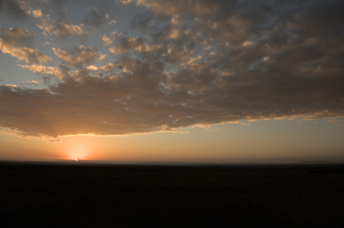 Another day on our African Safari Expedition enjoying the wildlife the dry landscapes where the wildlife will seek to find food and water to survive another day by not been hunted by another predator meanwhile we enjoy the scenery as the landscapes change from hilly to flat then become a dark field with only the sunset in the background shinning some colorful light for that moment before it drops behind the horizon.