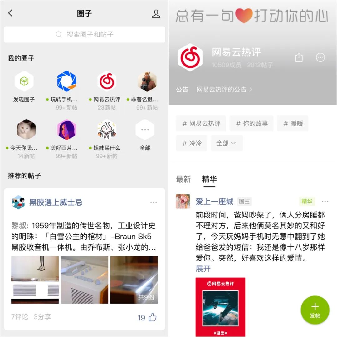 2019年12月11日,微信”好物圈+“改名”微信圈子“,开启基于话题/兴趣/内容/社区的圈子尝试。