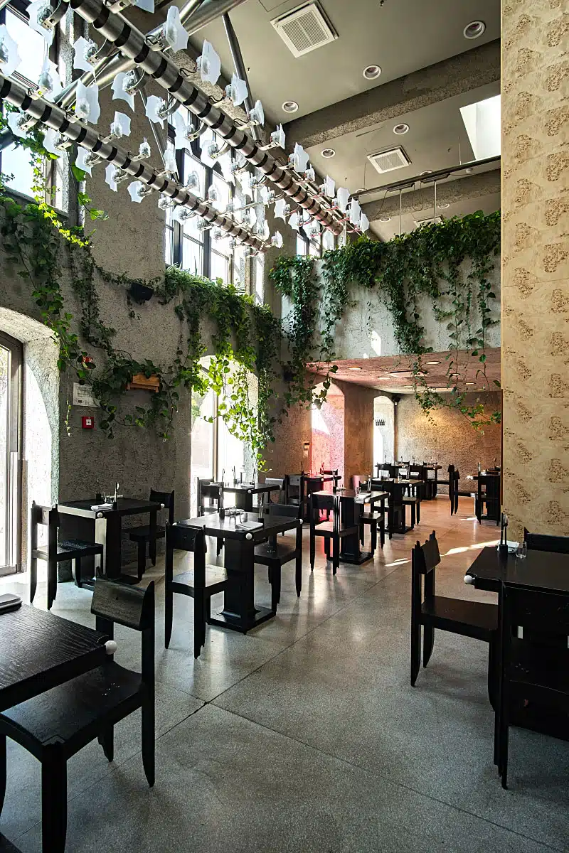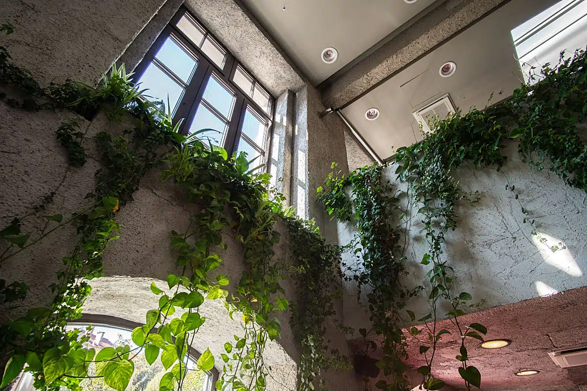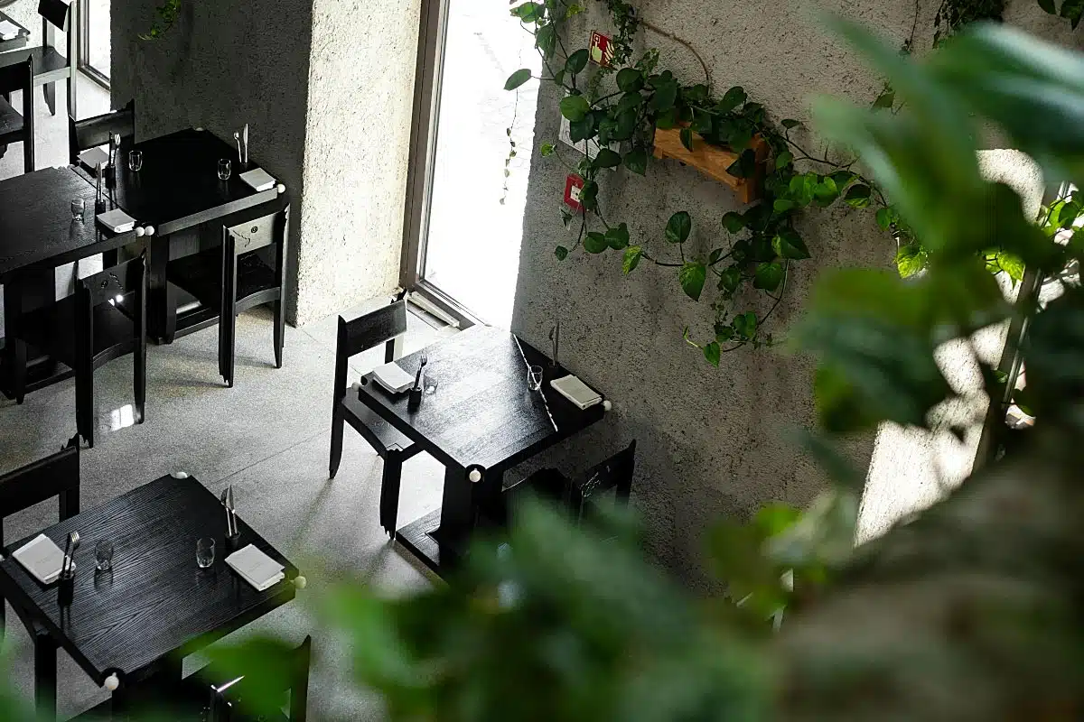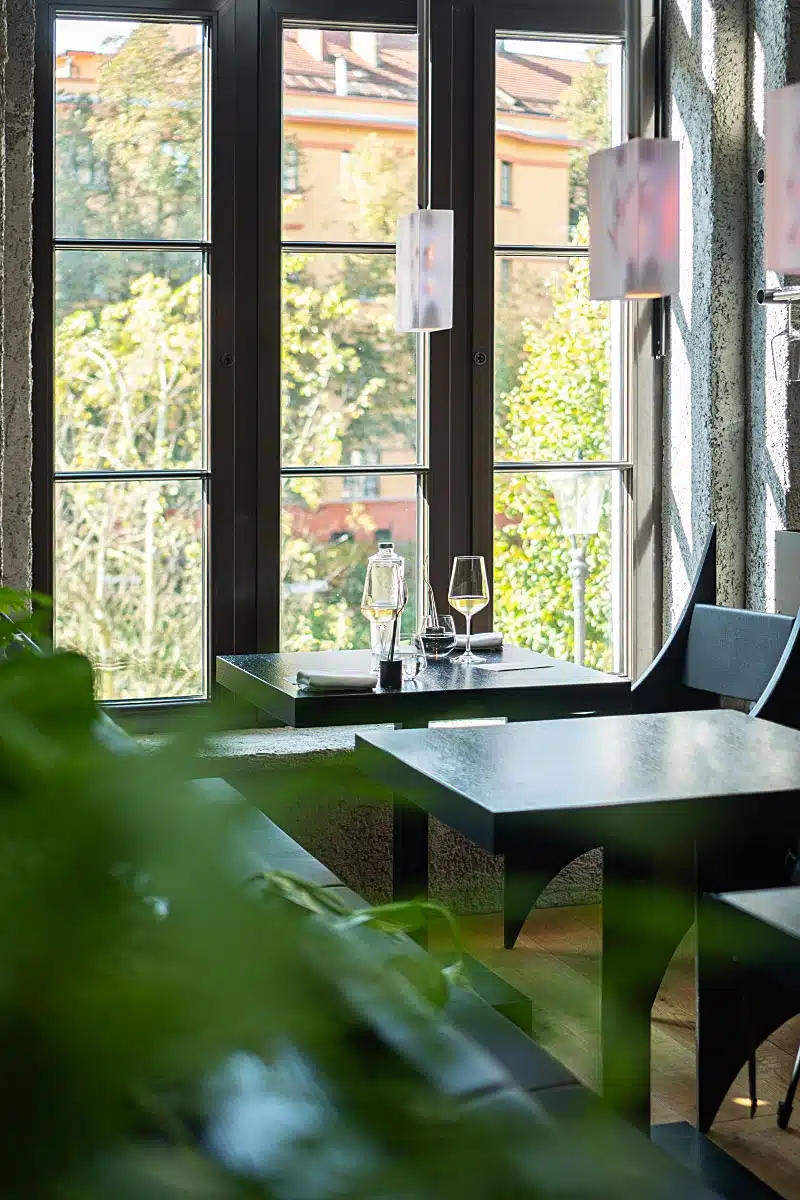 More shades of grey than we could count, meet the abundance of the natural green tones. While living plants are all that this place needs to exude beauty. Minimalistic furniture with an edge is quite a match to the historical industrial elements. Let’s not forget the river view and leisure foot traffic. It all results in a relaxed atmosphere where one can enjoy the finer things in life.