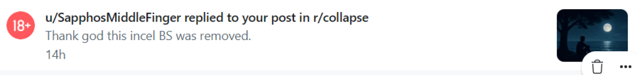 ๐ฑ๐ฎ๐ฑ Looks like someone got angry... Why?... ๐ฎ Misogyny found in the post? Considering the nickname + "especially men" in the title?..