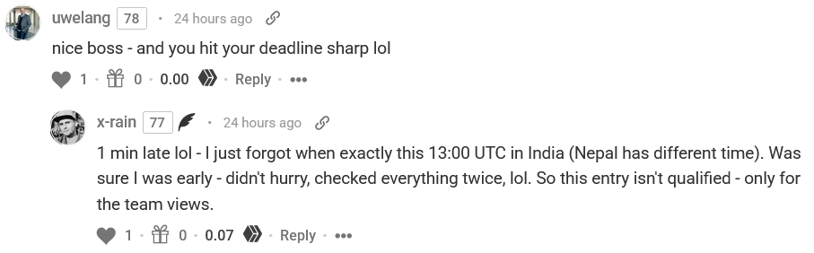 Yours truly, @x-rain, with a total of 328.1K views, was ready to collect silver but lost track of time, getting confused with the time zones. Thanks to @uwelang, who noted the deadline overrun with the exceptional German humor: