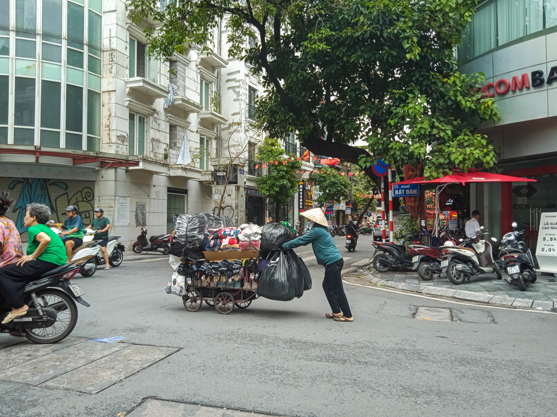 I probably don't need to write about how difficult it is to cross the streets and that scooters are everywhere. Every description of Hanoi includes this information. And yes, it's true that a green light for pedestrians in Hanoi is actually always red. The second truth is that once you start crossing the street, don't back up, because there's already another scooter behind you. I tried to discover some patterns in the traffic and came to the conclusion that whoever is behind has to watch out for whoever is in front, even if they're doing stupid things. Scooters are the most important... Then nothing for a long, long time... then rickshaws... then cars... and then pedestrians somewhere at the end. At the same time, I have the impression that it is easier for the Vietnamese. In the sense that a car will stop faster, but they also apply the principle of ‘others have to watch out for me and not run me over’. So I saw a lady with goods on a trolley so loaded that she couldn't see much, and yet she had no qualms about crossing the middle of the intersection without looking in any direction.