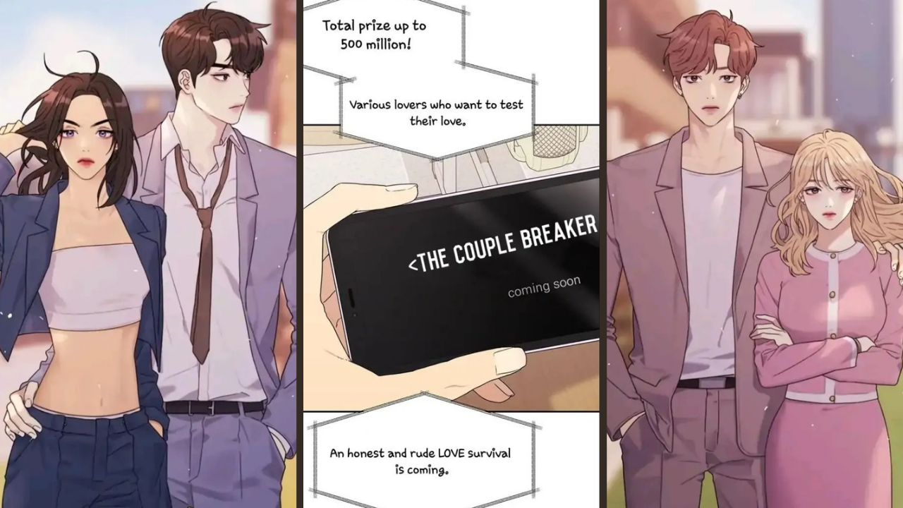 I really like the title "Couple Breaker" it's a perfect name for this manhwa it reflects the stories premise. The main leads decided to join the reality show which is designed to test relationships. The exes will confront each other on the stage where their deepest insecurities will reveal.