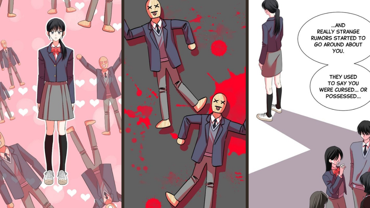 The images are screenshots from chapter 1,2,3,4,5,6 on webtoon. Images are edited with Canva