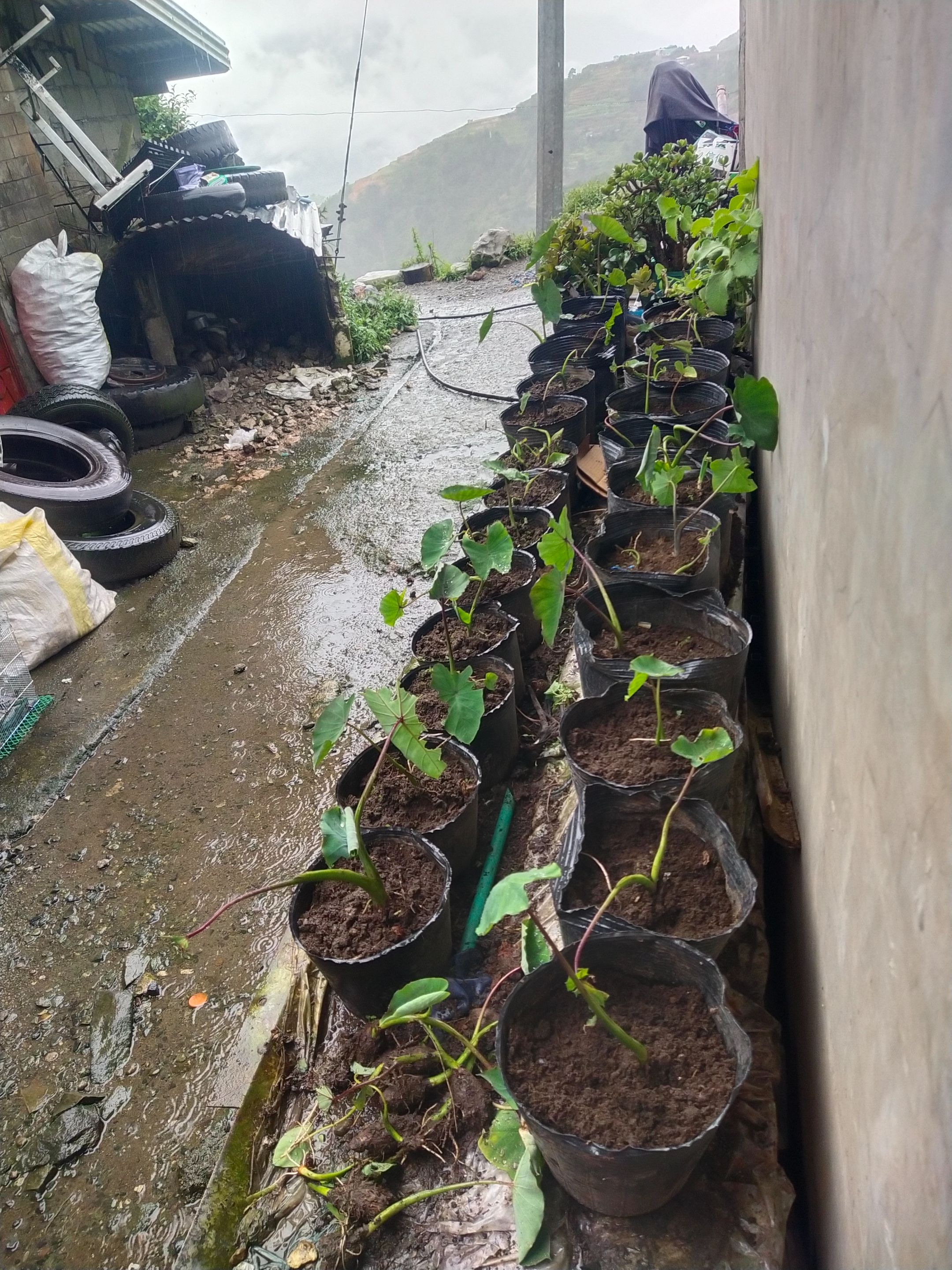 After a long week of nonstop rain, the sun finally showed up! Wow, it rained for a whole week here. The plants are happy, yes, but the weeds grew very fast, and sadly, some of the plants started to rot because of too much water. Just like this taro here in our backyard, the stems and leaves got damaged, and the weeds are starting to grow up. It’s really true that when rainwater is excessive, it can damage the plants.