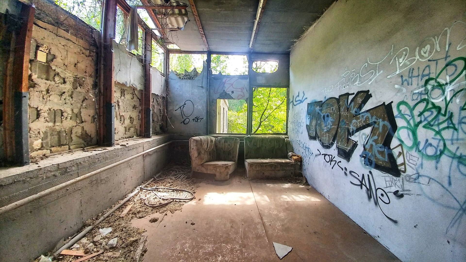 The old watchtower is barely visible today. Behind an overgrown wall hides its rusting guard chamber, long stripped of glass, protruding weakly from the thicket. The grounds, once heavily fortified and under military protection during the GDR era, now lie in a deep slumber – forgotten and reclaimed by nature.