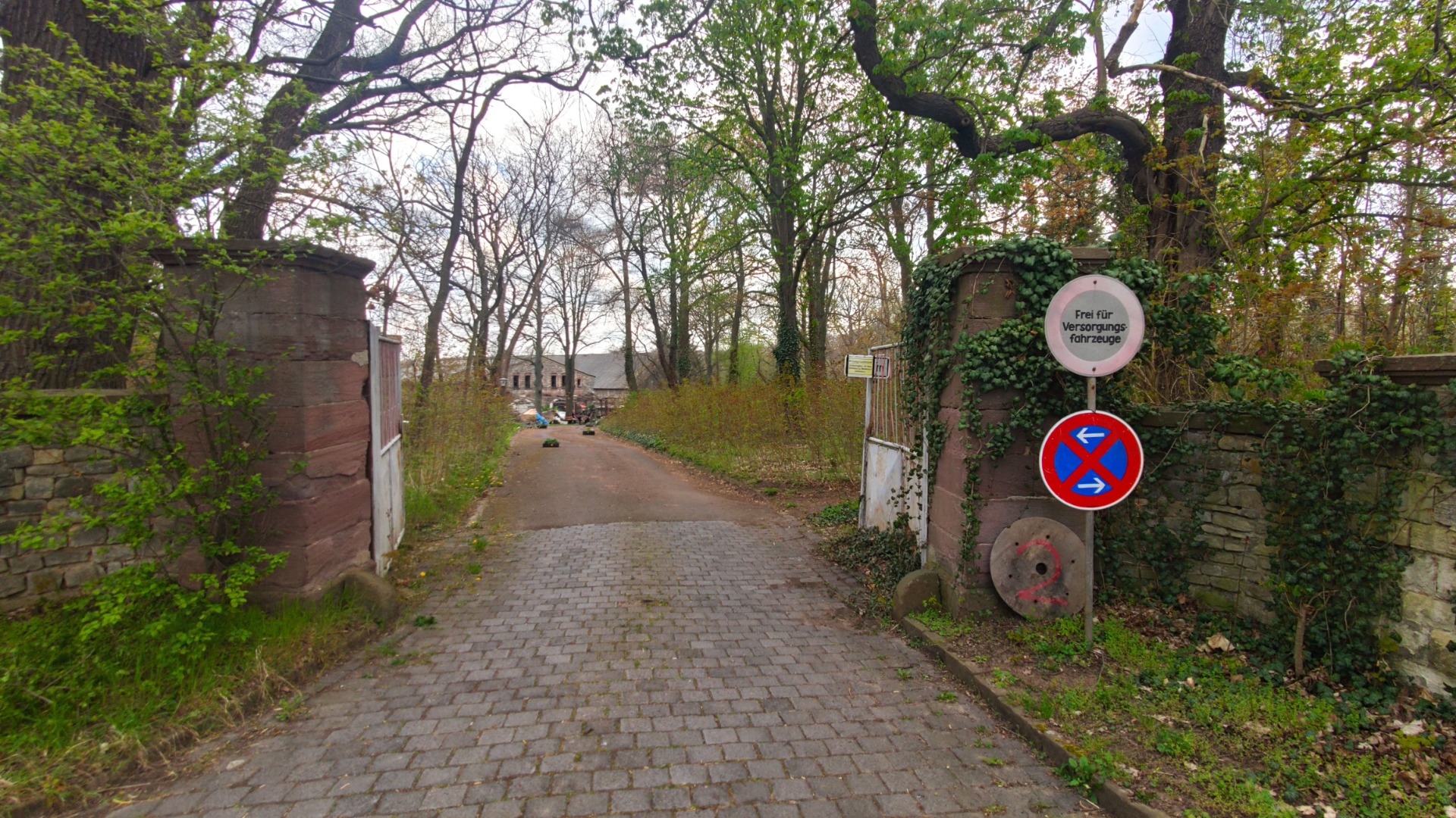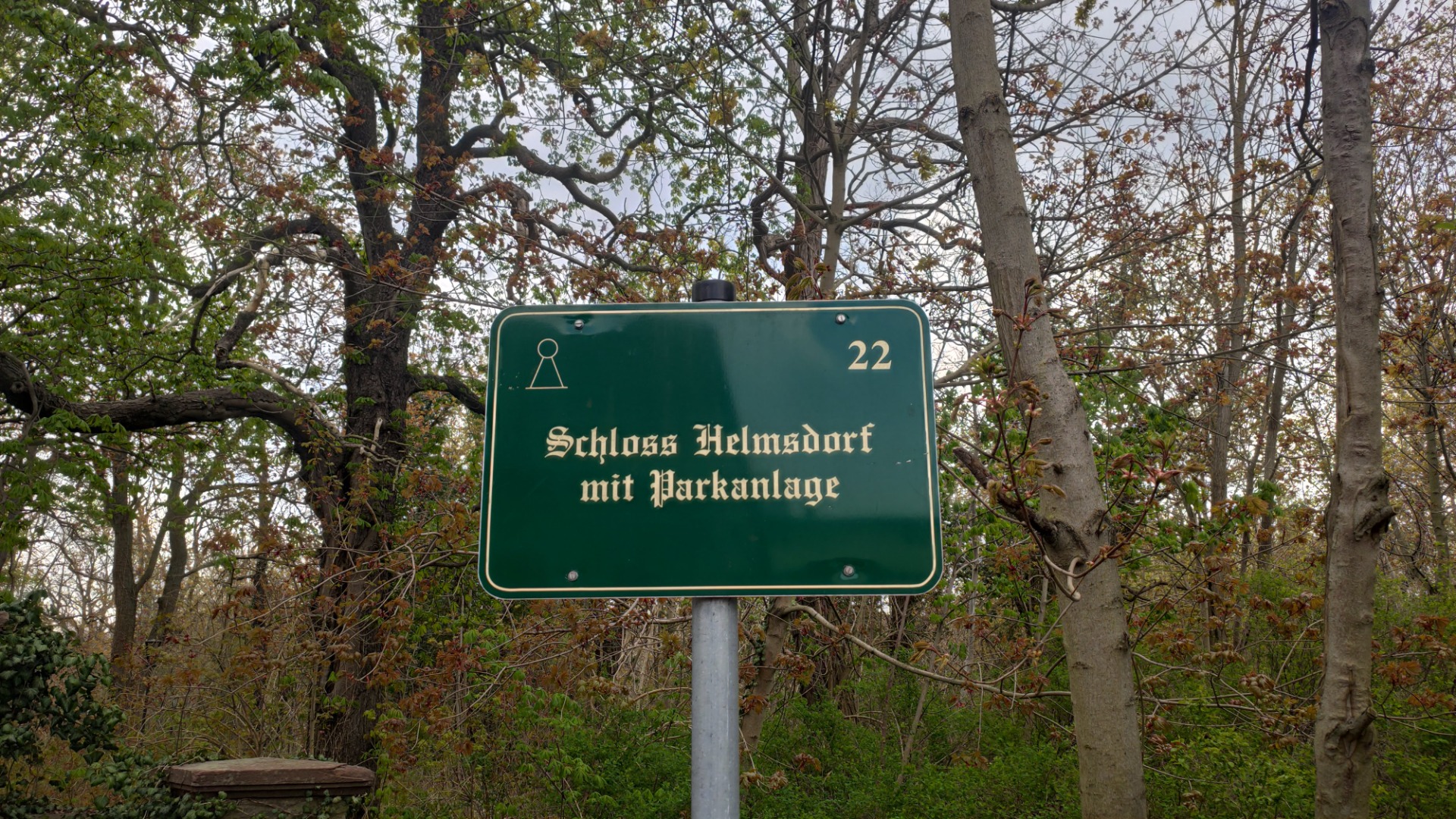 Two signs stand side by side, quietly telling the sad history of the place. One, round and weathered to a pale pink by decades of exposure, declares in the voice of another age: “Access for service vehicles only.” Behind it, bright and new, gleams a sign announcing “Castle Helmsdorf with park grounds” – a promise that, once past the gates, is fulfilled in a completely different way than visitors might expect.