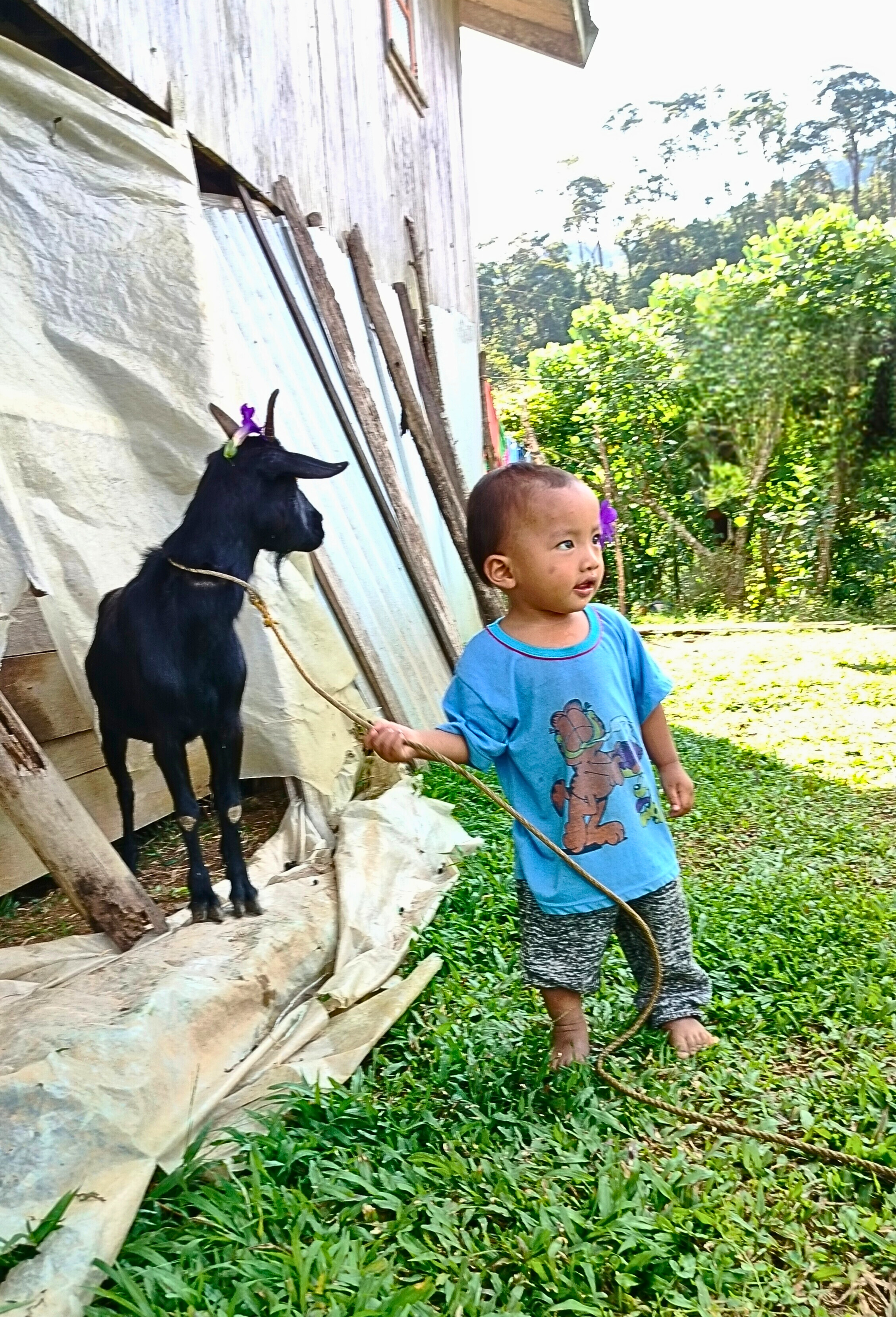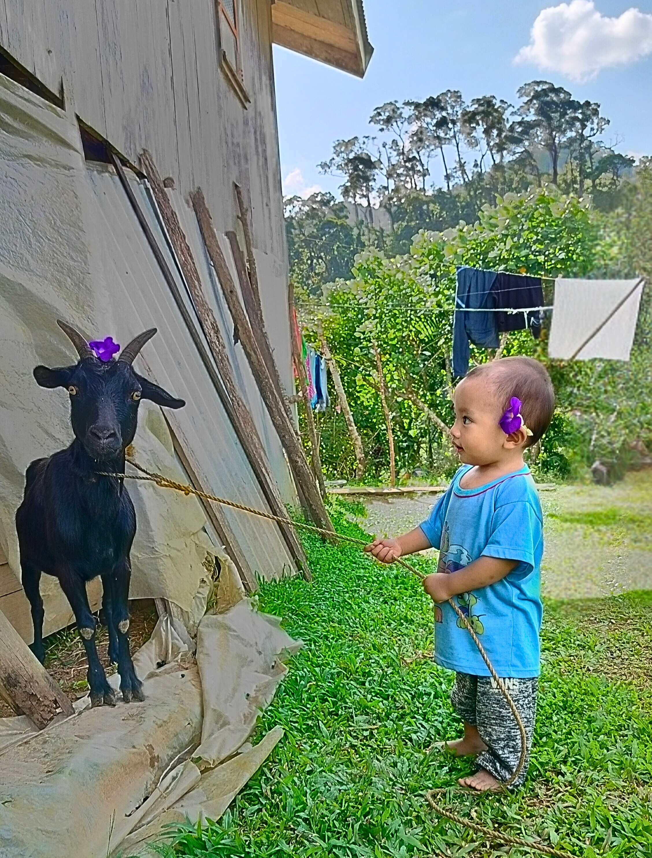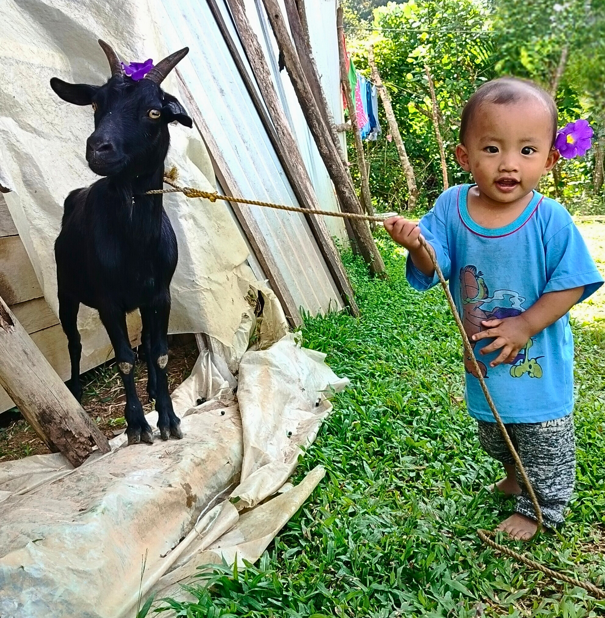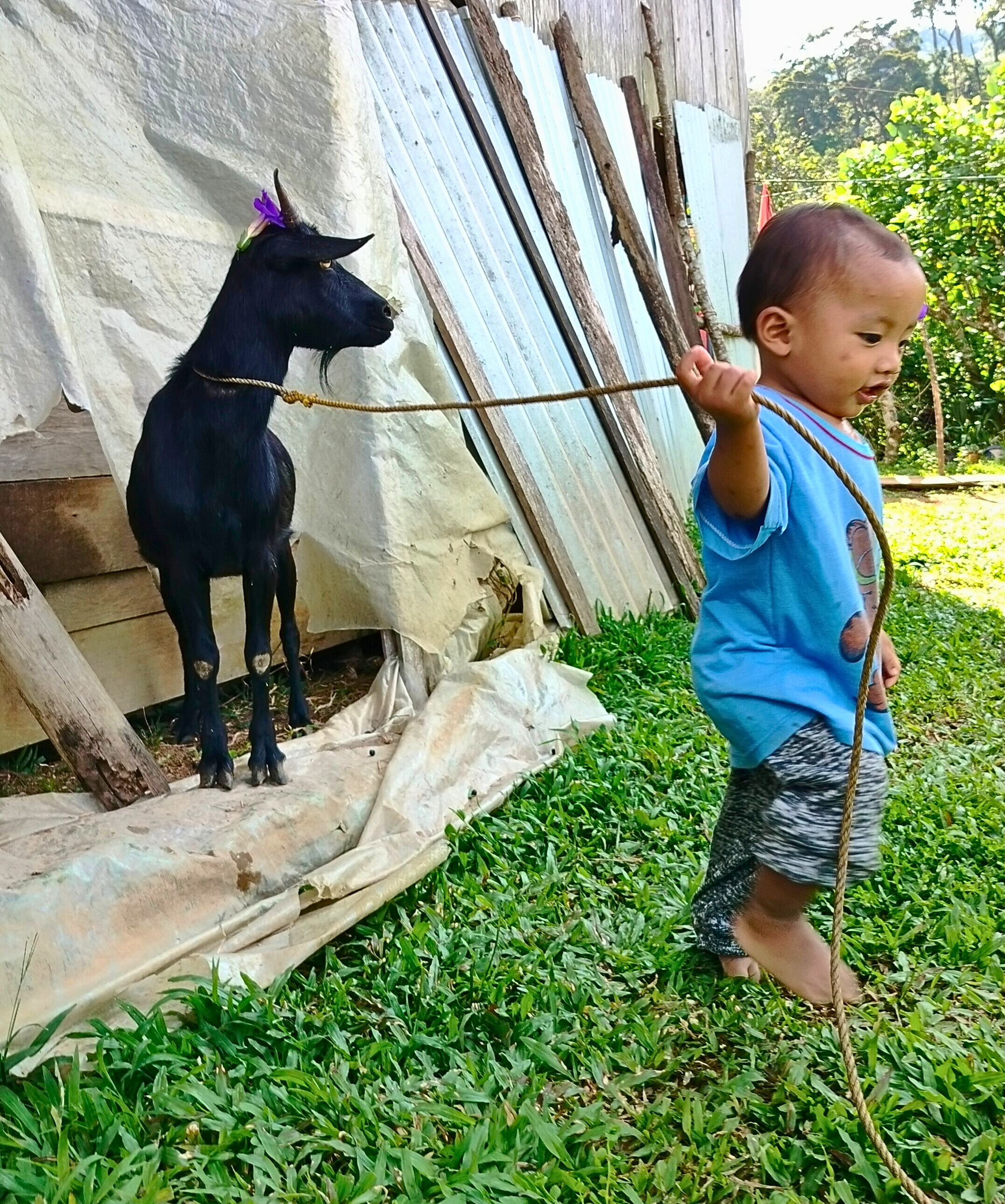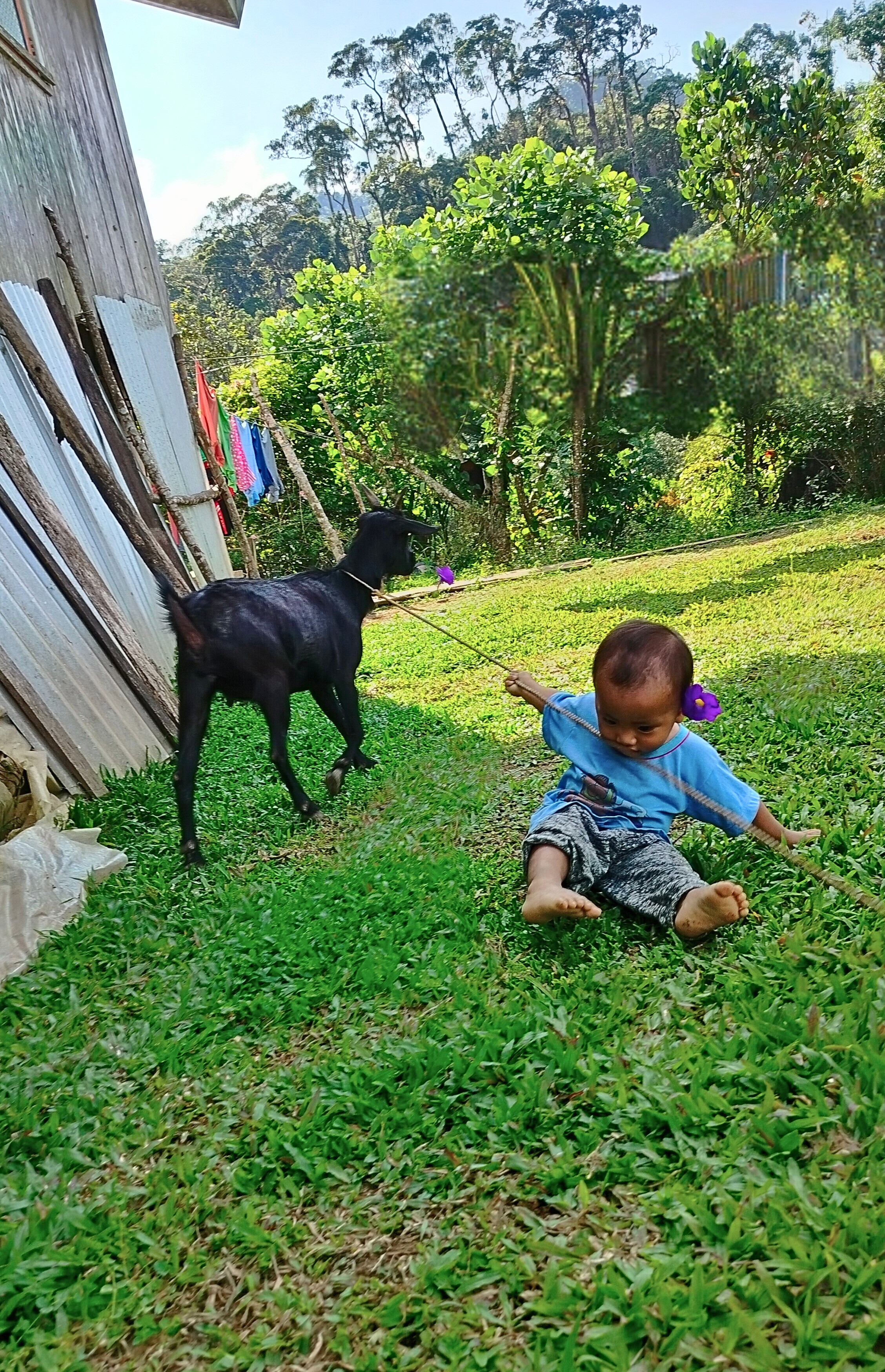 Neizzan has always been fond of animals as he grow older, especially their black goat. His day doesn’t feel complete without visiting his black friend. Thankfully, the goat is such a gentle and kind one, so no matter what Neizzan does, whether he’s hugging, patting, or playing with it, the goat just goes along happily specially if black is on a good mood.